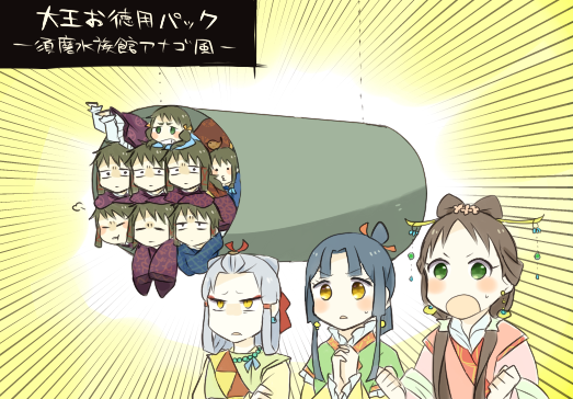 用明天皇と崇峻天皇たまにセットにされてるのがなんかお徳用パックっぽいという流れでなんでか須磨水族館のアナゴみたいにぎっしり詰まってる大王絶対かわいくないというよくわからない話題で盛り上がったので描いてみたらほんとにかわいくなかった