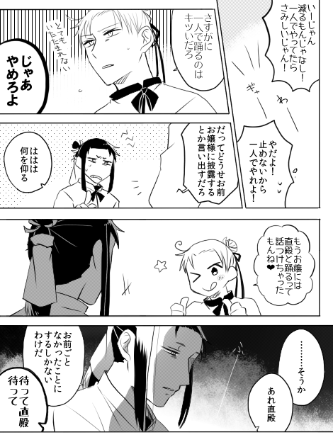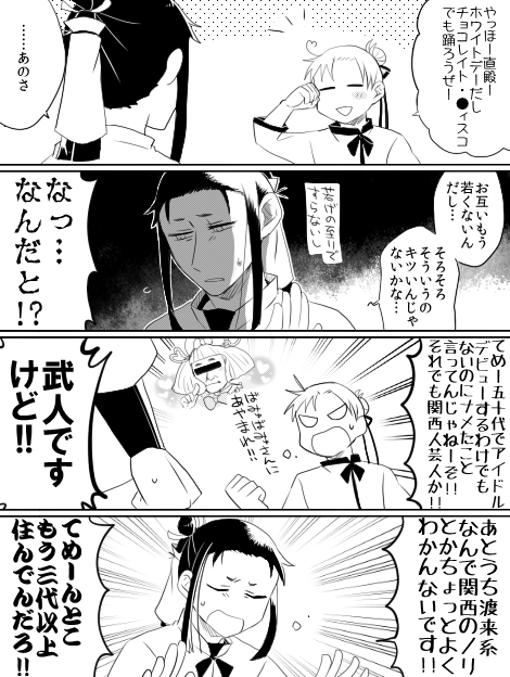 叔父姪タッグはもうずっと腹は見せずたまに軽口叩きつつ和やかにおしゃべりしててほしい…ミケさまは女狐っぽく描きたいと思ってるのですがそう見えてたら良いなと思っております