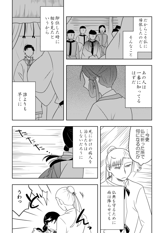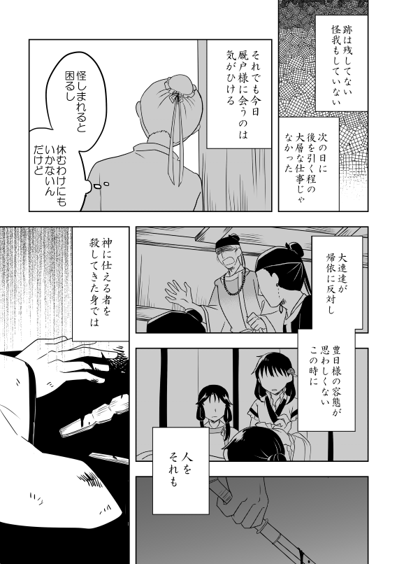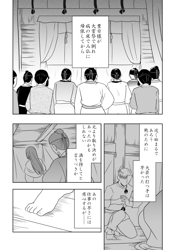全体的にじんわり暗いし冒頭から血が飛んだり人が死んだりちょっとオカルト入ってたり主従漫画と言いつつ半分くらい厩戸出てこなかったりあと中臣さんがほんとすまんって感じだったりなのでなんか色々とご注意ください