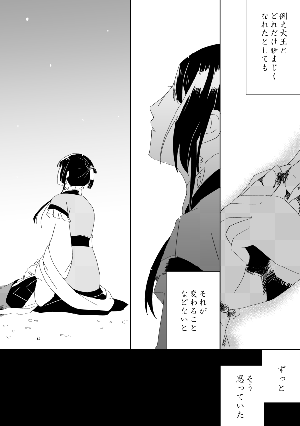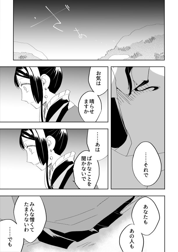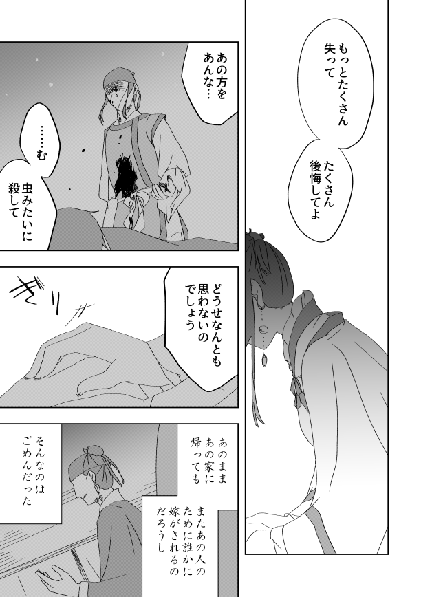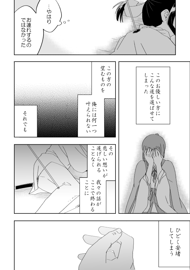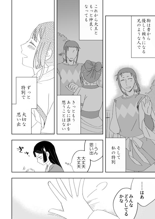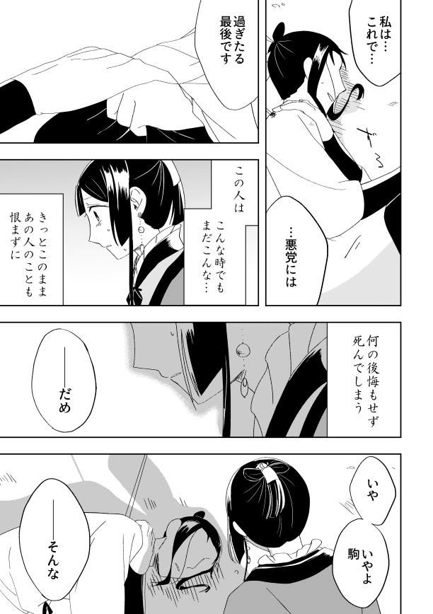 こんな感じのメンタルのまま逃亡成功してなんやかんやで駒河になる前に終わりそうなこじらせ具合が更にひどい前々からたびたび言ってる長めの話もあるんですが、そっちはそっちでいつか描きたいなあほんとに