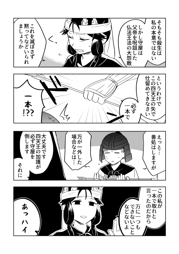 伝記の丁未は守屋さんがかっこいい悪役したりやる男大将軍迹見とか四天王の像みんなで彫って配ったり四天王のありがたい矢(ホーミング)(毒)だったり盛り盛りで楽しい
